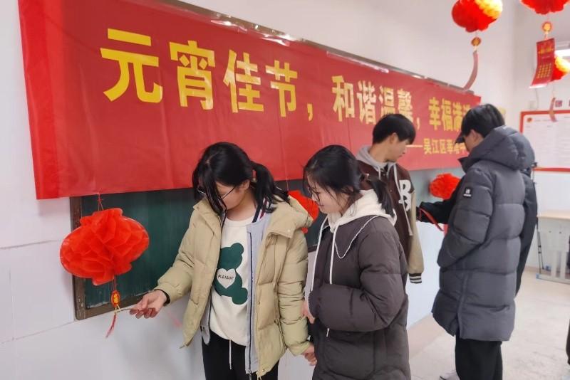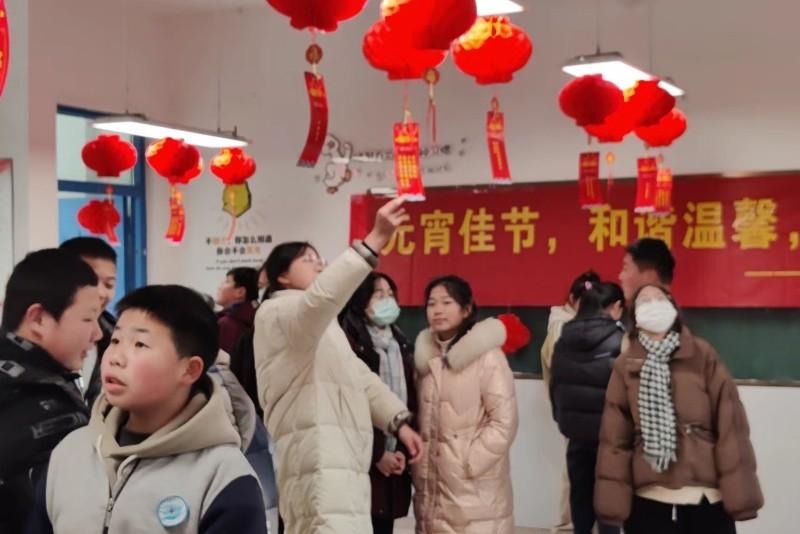 袨服华妆着处逢,六街灯火闹儿童。在元宵节来临之际,2月23日,莘塔中学关工委协助德育处举行了“欢乐元宵,灯谜猜猜猜”活动。面对红灯笼下的谜语,一场智慧大比拼开始了,同学们或凝神沉思,反复推敲;或热烈讨论,合作探究。“老师,这条灯谜打一动物,应该是蜜蜂”“老师,这条灯谜打七言唐诗,答案是夜半钟声到客船”……一条条灯谜的答案被破解,笑容、自信洋溢在同学们的脸上,活动现场气氛热烈、欢快。